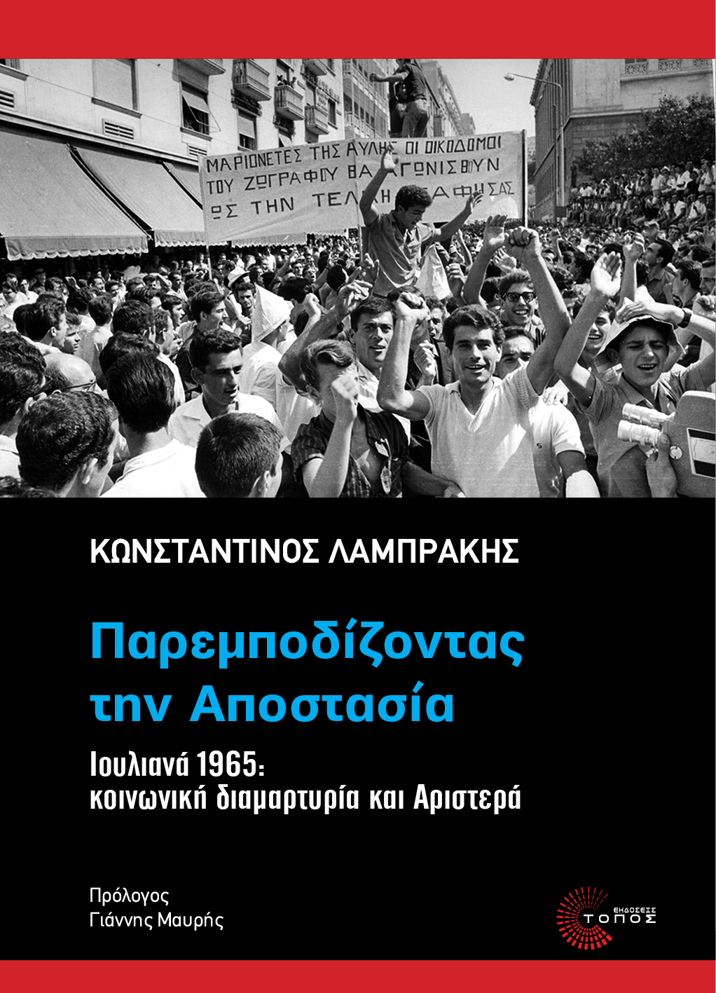 Το βιβλίο του Κωνσταντίνου Λαμπράκη Παρεμποδίζοντας την Αποστασία. Ιουλιανά 1965: κοινωνική διαμαρτυρία και Αριστερά (Αθήνα: Τόπος, 2025) είναι ένα πραγματικά εξαιρετικό βιβλίο. Τέτοιες κουβέντες δεν τις λέω συχνά, ούτε και τις λέω εύκολα, όμως προτού πάω στο περιεχόμενο (στο θεωρητικό –ας πούμε– διάβημα του Λαμπράκη), επιτρέψτε μου να ξεκινήσω με μια μετα-θεωρητική επεξήγηση του επαίνου μου: μια αναφορά, δηλαδή, όχι τόσο στο τι καθαυτό εισφέρει το βιβλίο (θα αναφερθώ βέβαια και σε αυτό), αλλά στο πώς το εισφέρει. Θέλω επ’ αυτού να θίξω τρία βασικά σημεία.
